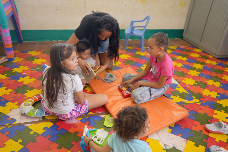 Este emprendimiento no solo cuida, también forma. Con vocación y cariño, acompañan a niños y niñas desplazados, fortaleciendo desde pequeños el amor por el estudio y el arraigo por su comunidad.